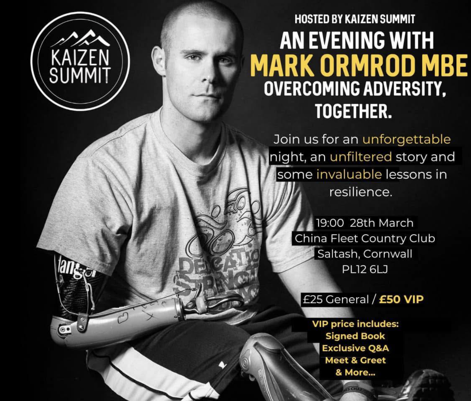 Join us for an unforgettable evening as Mark shares his extraordinary story of overcoming seemingly impossible odds to become an internationally acclaimed speaker, elite athlete, and mentor to leaders across the globe.